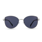 A polished silver frame with bold black lenses, striking the perfect balance between edgy and sophisticated. Built for those who embrace both power and poise.