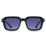 A matte black frame with dark-tinted lenses, featuring silver hinge details, making it a go-to for sleek, modern aesthetics.